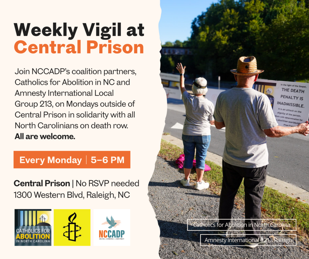 Join us for a virtual info session to learn about the state of the death penalty in North Carolina, the work of NCCADP, and how you can get involved. This hour-long conversation is a chance to connect with others across the state and find your place in the movement to end capital punishment.