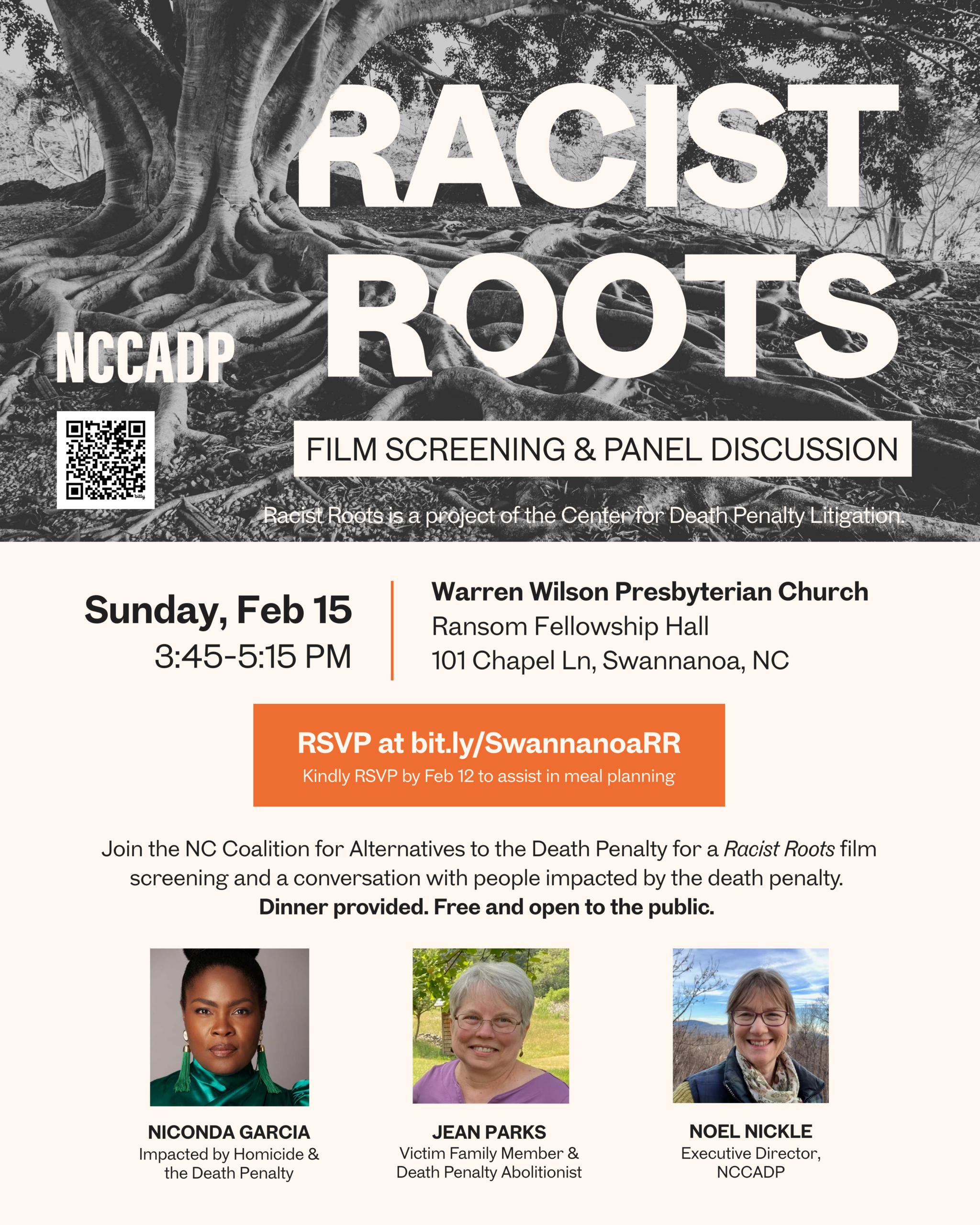 You are warmly invited to join NCCADP for a screening of Racist Roots, a 25-minute film that uncovers the deep entanglement between white supremacy, racial terror lynching, and North Carolina's death penalty. Following the film, you will hear from two people directly impacted by homicide and the death penalty: Niconda Garcia, founder of Change the Rubric Jean […]