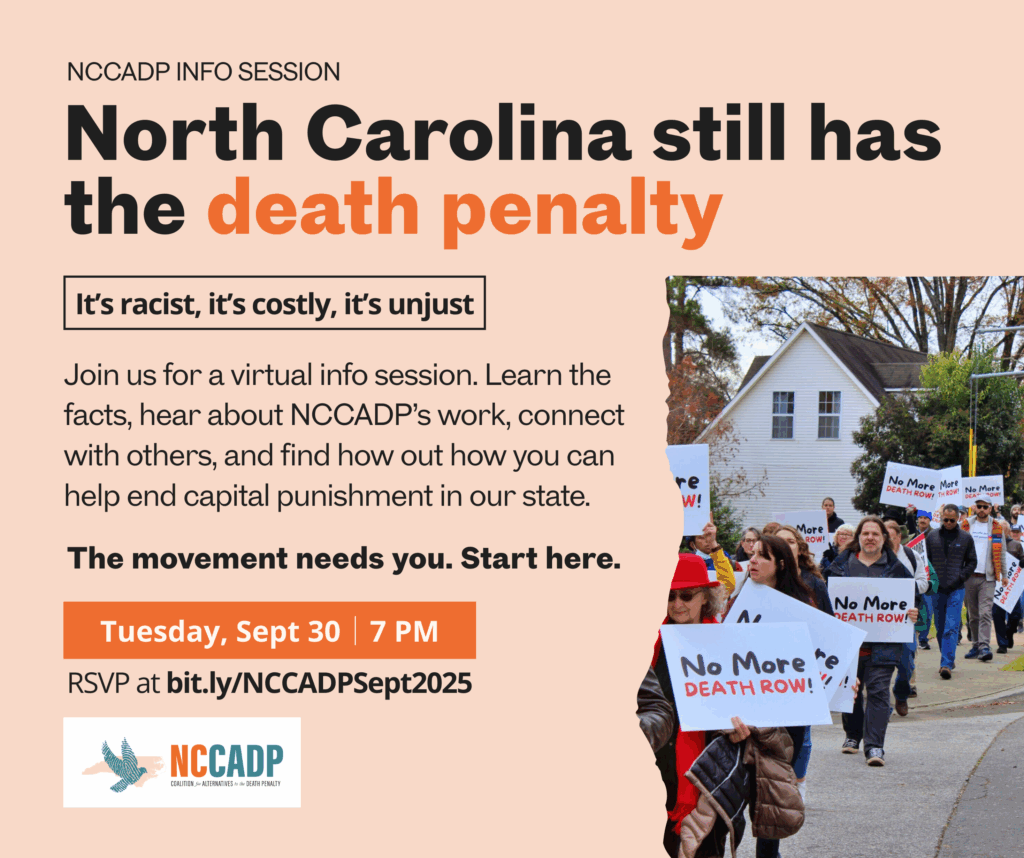 Join us for a virtual info session to learn about the state of the death penalty in North Carolina, the work of NCCADP, and how you can get involved. This […]