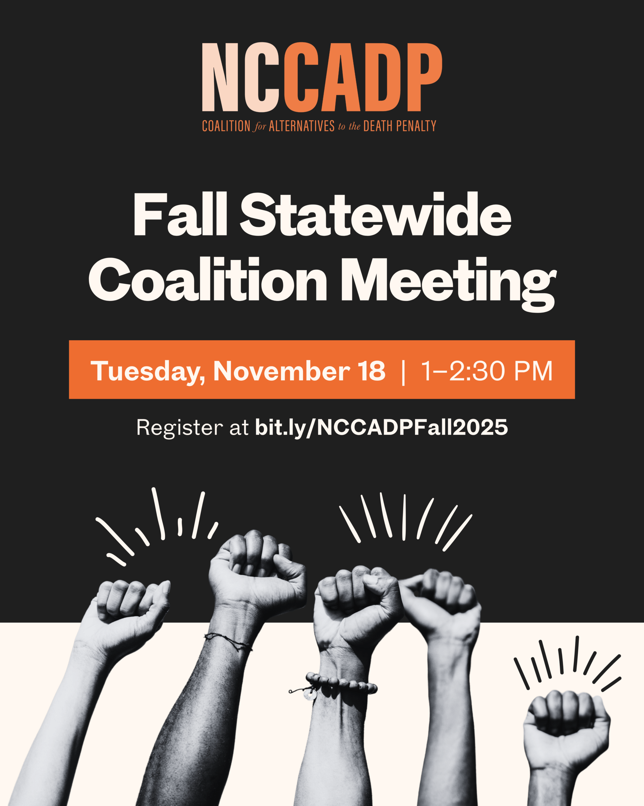 Zoom , United StatesJoin us for a virtual info session to learn about the state of the death penalty in North Carolina, the work of NCCADP, and how you can get involved. This hour-long conversation is a chance to connect with others across the state and find your place in the movement to end capital punishment. The movement […]